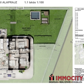 A 3 szobás lakás 99 m2 alapterületű, 45,78 m2-es erkéllyel és 185,6 m2-es kizárólagos használatú kertrésszel rendelkezik.