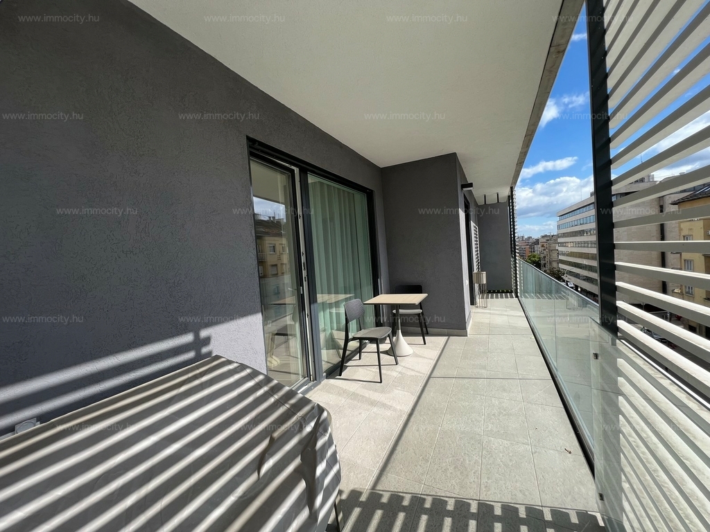 A nappali+ 2 hálós lakáshoz kényelmes, mindhárom szobából megközelíthető, 20,68 m2-es erkély tartozik.
