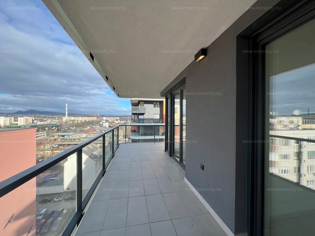 A42 m2-es, 2 szobás lakást két oldalról 26 m2-es terasz veszi körül és a terasznál egy 2 m2-es tároló tartozik hozzá.