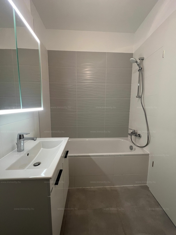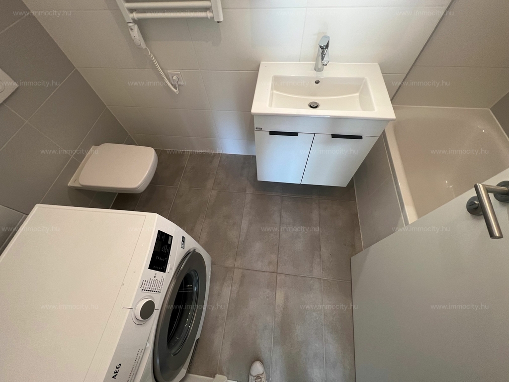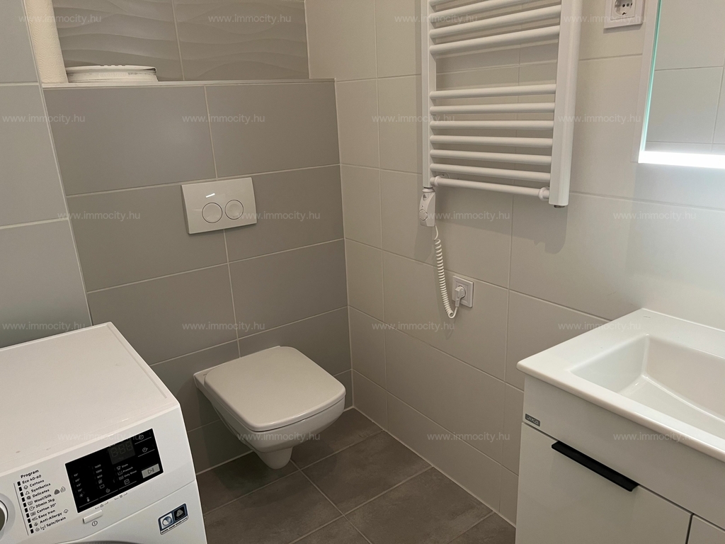 A konyha AEG gépekkel felszerelt (mosogatógép,indukciós főzőlap, légkeveréses sütő, mikrohullámú sütő, hűtőszekrény mélyhűtővel, páraelszívó). A fürdőszoba fürdőkáddal, továbbá mosógéppel (AEG) felszerelt.
