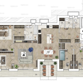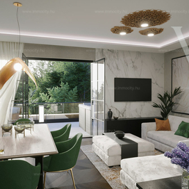 A B épület földszinti, 5 szobás lakása 145 m2 alapterületű, 35,16 m2-es terasszal és 14 m2-es kizárólagos használatú kertrésszel rendelkezik.