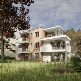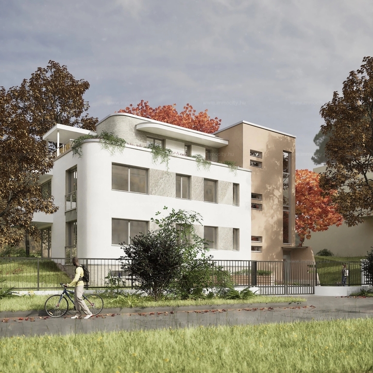 Forgalom-mentes kis utcában épül ez elegáns vonalvezetésű, mindössze 3 lakásos társasház.